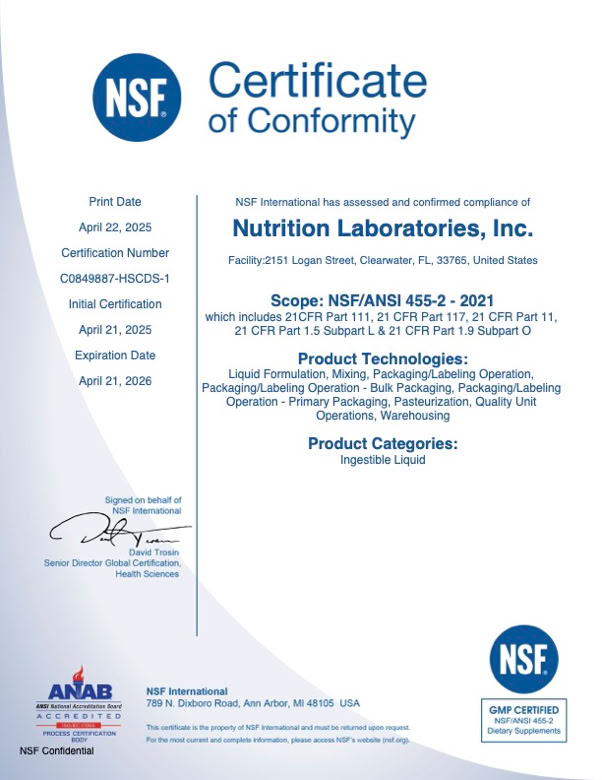 © 2026 by Nutrition Laboratories, Inc. All Rights Reserved | Privacy Policy